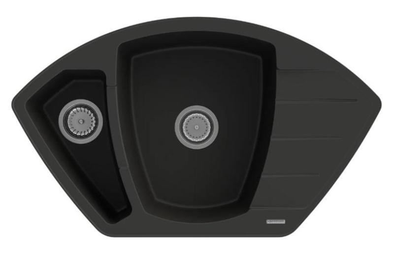 Graniteland Monte гранитен черен ъглов мивката за вграждане 901x538mm с неръждаема стомана тапа 1208971413