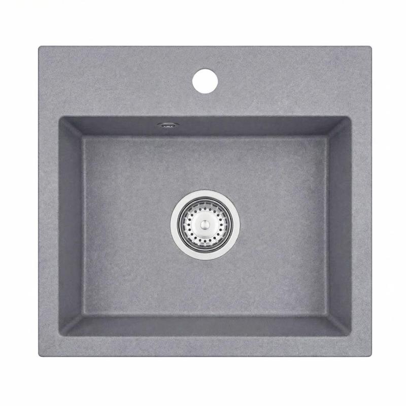 Гранителен умивалник Nera 45x42 см в сиво С повърхностен монтаж, отвор за смесител и неръждаема пробка 1208971436