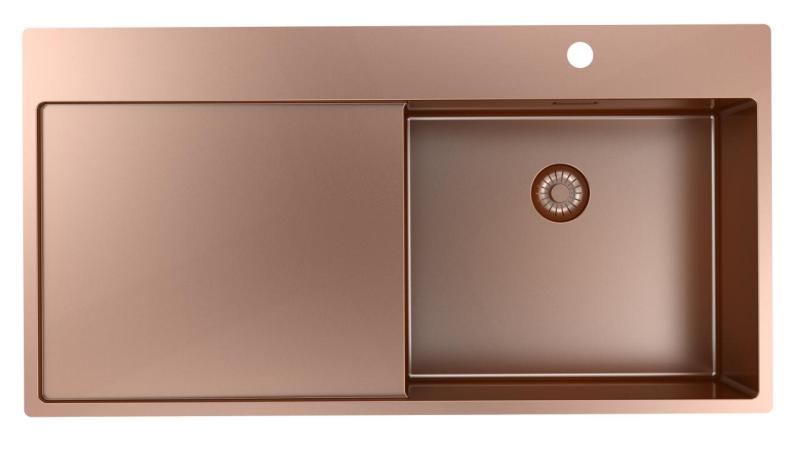 Pure.Sink Exclusivo Медна мивка с отцеждащ се участък 100x52 cm Кранче вдясно PEX47100RT-62