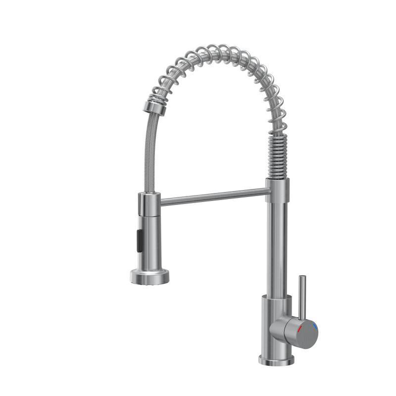 Този смесител има едноръкохватков дизайн, което прави регулирането на водата бързо и лесно. Той също така има въртящ се чучур за максимална гъвкавост и лесен достъп до цялата мивка. Към това, смесителят е оборудван с издърпващ се чучур с режим на пръскане, който позволява лесно почистване на по-големи съдове и дълбоко измиване на мивката.